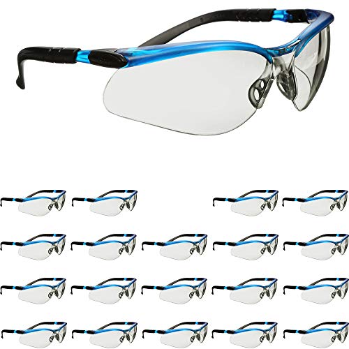 houzz 3M BX Safety Glasses, 20 Pair, ANSI Z87, Ocean Blue Frame, Anti-Scratch Indoor/Outdoor Clear Lens, Adjustable Length Temples and Lens Angle